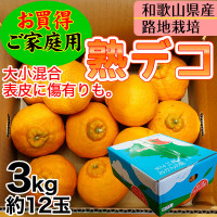 トップ > ギフトシーン別カテゴリー > 2025 ご予約開始 ご家庭用 不知火(デコポン)露地栽培の樹上完熟デコポン 和歌山県産サイズ不揃い、多少の傷有り 3kg(約12玉)送料無料※北海道、沖縄除く