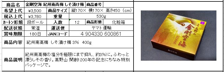 霊峰 高野山 金剛空海(紀州南高梅干し)