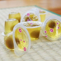 可愛いひとくちゼりーの中に、小梅で作った甘露梅を